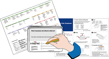 Controls and simplifies input of customer data. In the program you record the customer profiling data, prioritization of the Value cards and the benchmarking results. Configures the data so it later can be imported to VoC-analyze. To provide a quick feed back the program will create a simplified SWOT for a maximum 8 deck of cards.
